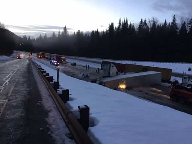 It was just before 5 a.m. when a dump truck and trailer carrying treated sewage hits a patch of ice.